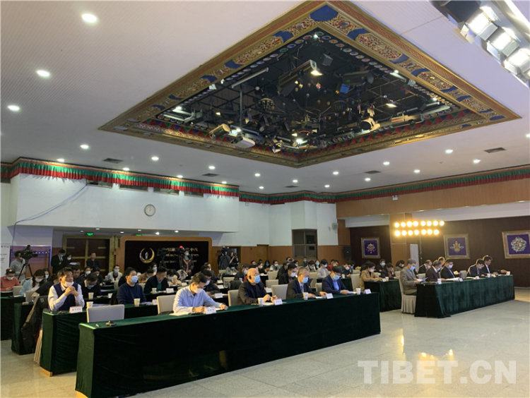 圖為聯(lián)合國人權(quán)理事會第46屆會議“西藏脫貧攻堅和文化保護(hù)”云上邊會線下主會場現(xiàn)場