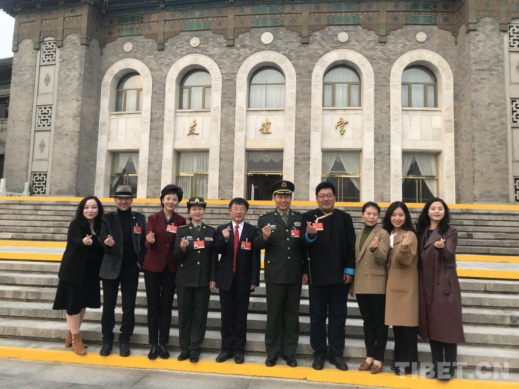圖為扎西委員和西藏自治區(qū)代表委員們一同步入會(huì)場(chǎng)