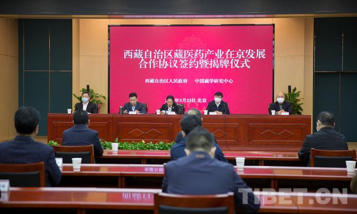 中國西藏網(wǎng)訊 3月23日,西藏自治區(qū)藏醫(yī)藥產(chǎn)業(yè)在京發(fā)展合作協(xié)議簽約暨揭牌儀式在京舉行。西藏自治區(qū)人民政府、中國藏學(xué)研究中心、西藏自治區(qū)衛(wèi)生健康委員會(藏醫(yī)藥產(chǎn)業(yè)推進(jìn)辦公室)、山南市藏醫(yī)醫(yī)院、西藏甘露藏醫(yī)藥產(chǎn)業(yè)集團(tuán)有限公司等相關(guān)負(fù)責(zé)人參加儀式。中國藏學(xué)研究中心黨組書記陳宗榮,西藏自治區(qū)人民政府副主席羅梅分別致辭,中國藏學(xué)研究中心總干事鄭堆主持。