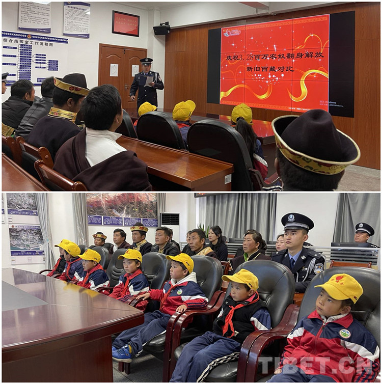 儀式結束后,派出所邀請學校師生及群眾代表參觀警營,民警貢秋羅布還為學生們上了一堂生動的西藏百萬農奴解放歷史課,講解了西藏百萬農奴在中國共產黨的帶領下,打破政教合一的封建農奴制的枷鎖;講述了短短幾十年跨越上千年的社會主義新西藏的發(fā)展奇跡。課后,小學生多吉說,“從這堂課里,知道以前的小孩多么可憐,現(xiàn)在我們有了警察叔叔和老師們的幫助,一定要好好學習,長大以后報效祖國?!?/p>