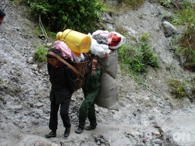 由于境內(nèi)交通閉塞,交換是墨脫門巴族、珞巴族群眾獲取生活必需品的重要途徑。而對外進(jìn)行物資交換,往返途中還要背負(fù)重物,翻越高山陡崖、跋涉湍急溪流,爬天梯、滑溜索、過獨木橋,一次往返需10至20天左右,勞動強度和艱險程度之大令人瞠目結(jié)舌,沿途殘留的人畜白骨充分印證了此路之艱險。