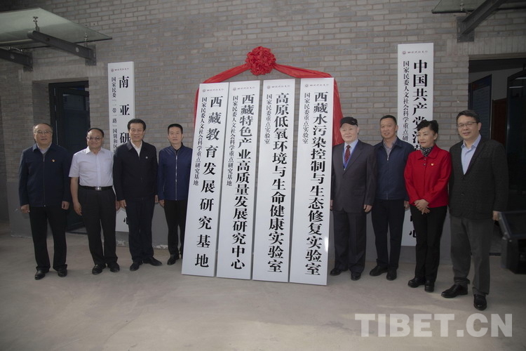 研討會(huì)開幕式之前,與會(huì)領(lǐng)導(dǎo)為西藏教育發(fā)展研究基地、西藏特色產(chǎn)業(yè)高質(zhì)量發(fā)展研究中心、高原低氧環(huán)境與生命健康實(shí)驗(yàn)室、西藏水污染控制與生態(tài)修復(fù)實(shí)驗(yàn)室同時(shí)掛牌揭幕。大會(huì)主旨發(fā)言之后,西藏民族大學(xué)黨委常委、副校長(zhǎng)史本林、西藏駐格爾木辦事處(藏青工業(yè)園區(qū))黨委書記邱川共同簽訂雙方合作框架協(xié)議,旨在加強(qiáng)科研交流合作,共同為西藏社會(huì)高質(zhì)量發(fā)展做出貢獻(xiàn)。