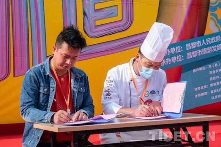 此外,活動現(xiàn)場還進行了非物質(zhì)文化遺產(chǎn)體驗活動和產(chǎn)品展銷活動,共有32個企業(yè)參加。據(jù)悉,截止活動結(jié)束,現(xiàn)場累計交易額5萬余元。重慶文旅館同參賽人員進行現(xiàn)場簽約,這對昌都餐飲業(yè)的推廣和發(fā)展具有重要的意義。(中國西藏網(wǎng) 記者/次旦拉姆 圖片由卓卓康巴美食大賽組委會提供)