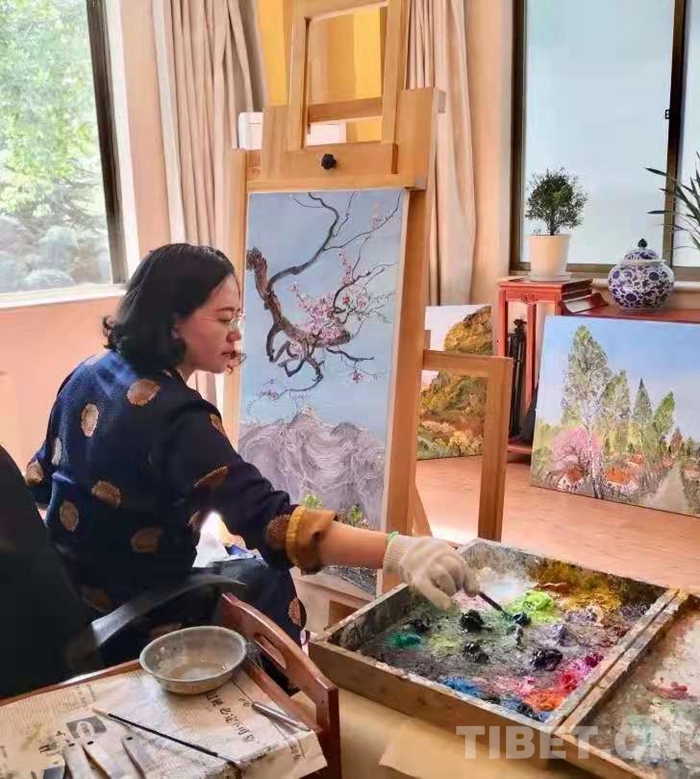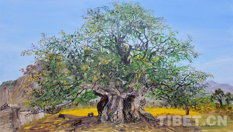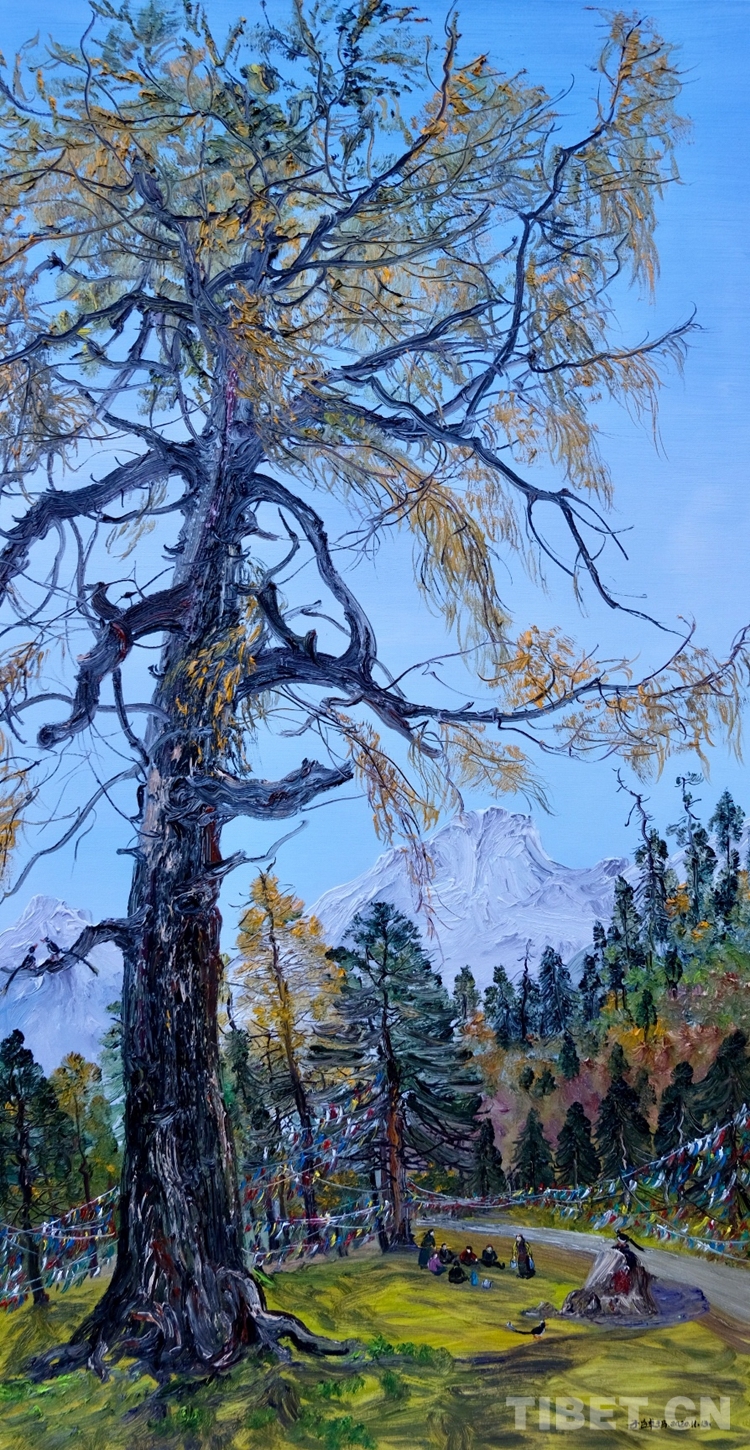 “展覽的油畫創(chuàng)作大多是在寫生現(xiàn)場(chǎng)完成的,她的藝術(shù)風(fēng)格也清新生動(dòng)。她以自己的寫生作品,令觀眾共享融入自然的至純大美,這是一種平易近人的審美方式?!眹乙患?jí)美術(shù)師余有心評(píng)價(jià)說,子白特別善于畫樹,她的一幅幅佳作就是這些千年古樹的肖像,借審美而參悟自然生態(tài)的奧妙,帶觀眾領(lǐng)會(huì)高原生態(tài)文明之真諦。