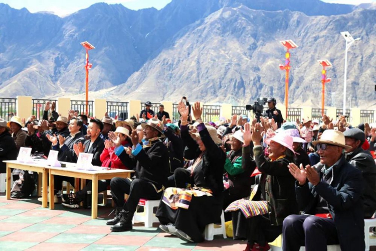 嘎東團結(jié)新村的村民們早早地來到錄制現(xiàn)場,坐在觀賽區(qū)等候比賽開始。當(dāng)62歲的參賽歌手阿乃引吭高歌《北京的金山上》,全場村民跟著節(jié)奏揮動手中的紅旗,一起和唱著“北京的金山上光芒照四方,毛主席就是那金色的太陽……”熟悉的旋律依舊讓人感動,唱出了西藏各族兒女對黨真摯的感情。