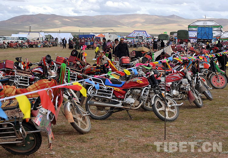 這是在雙湖“撤區(qū)建縣”慶祝活動(dòng)上,許多牧民騎著自家摩托車遠(yuǎn)道而來(唐召明2013年7月26日攝)