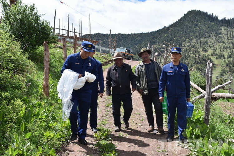 圖為中隊指戰(zhàn)員前往俄洛鎮(zhèn)孔瑪村慰問