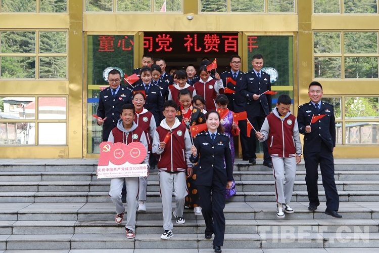 圖為西藏亞東出入境邊防檢查站與駐地學生開展“童心向黨 禮贊百年”系列活動