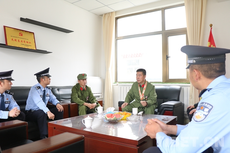 圖為對越自衛(wèi)反擊戰(zhàn)功臣蒲體超同志正在向里龍邊境派出所民警講述親身經歷的故事 攝影:曹忠皇