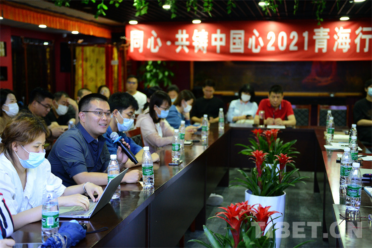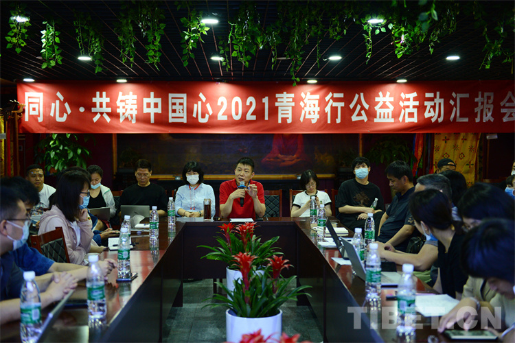 圖為“同心·共鑄中國心”組委會項目辦公室主任薛艷斌行前介紹果洛州具體情況