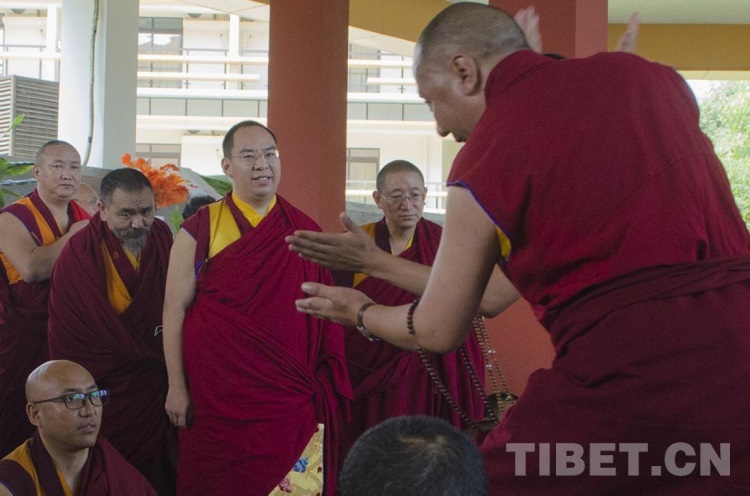 圖為班禪在四川藏語佛學院觀看學員辯經 攝影:歐帆