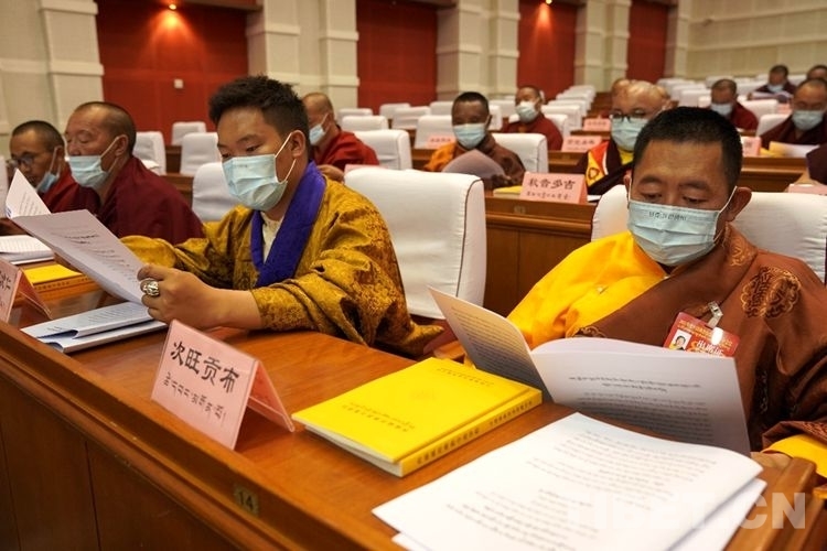 圖為中國(guó)佛教協(xié)會(huì)西藏分會(huì)第十一屆理事會(huì)第二次理事會(huì)會(huì)議閉幕會(huì)現(xiàn)場(chǎng) 攝影:王淑