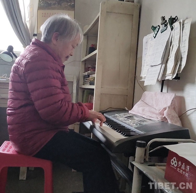鄧親和,四川省樂山市犍為縣人,出生于1931年,十八軍52師文工隊(duì)?wèi)?zhàn)士。1950年,鄧親和19歲,正值高三,成績優(yōu)異的她不顧家人的勸阻,毅然放棄了繼續(xù)讀書的機(jī)會,踏上了解放西藏的征途,從此在雪域高原上留下了人生最寶貴的青春足跡。初見鄧?yán)蠋?,她親切和藹的樣子,給我留下深刻的印象。老人雖然退休多年,但是她的生活仍然格外豐富。據(jù)老人講,她的作息時(shí)間比較規(guī)律,堅(jiān)持做八段錦鍛煉身體,自己做家務(wù),空閑時(shí)間還會看書看報(bào)、提筆練字,或是彈彈電子琴,唱唱歌等等,生活豐富多彩。此刻,我從她的身上看到了年輕時(shí)鄧親和的神態(tài)與風(fēng)采?;厥啄嵌螎槑V歲月,翻雪山、過草地、穿峽谷、涉冰河……面臨高山缺氧的生命危險(xiǎn),趟越急流冰河的刺骨鉆心,爬冰臥雪、忍饑耐寒,遇艱險(xiǎn)不畏其險(xiǎn),歷困難不以為難,樁樁件件好似一首首雋永的絢麗詩篇,常在她記憶里回蕩,令人難忘。