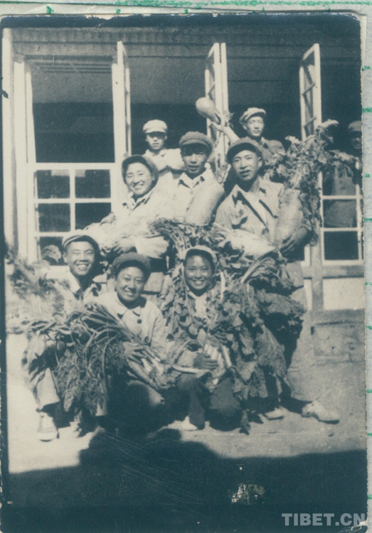 入城后,文工隊(duì)分別住在江孜城郊強(qiáng)查洞幾處民房里。初到江孜,后方給養(yǎng)一時(shí)運(yùn)不上來,蔬菜等主副食又得不到有效供給,西藏只有土豆、元根,他們還不能隨便采購。西藏工委和十八軍黨委遵照毛主席“進(jìn)軍西藏,不吃地方”的指示,提出“搞好生產(chǎn)是進(jìn)藏部隊(duì)長期的一項(xiàng)中心任務(wù)”,文工隊(duì)同分工委全體工作人員一道在帕拉開墾荒地、播種糧食。天寒地凍又缺少農(nóng)具,用鐵锨鏟鏟不動,用十字鎬挖,一鎬下去,直冒火星。同志們想方設(shè)法烤凍土,翻起一塊一塊像鐵板一樣的凍土,晾在太陽下曬,然后再一鎬一鎬的砸碎、耙平,沒有耕牛,男同志就扛起繩拉犁,女同志平地耙地。江孜海拔4000米以上,平日里都缺氧,此時(shí)再加上勞累更是頭暈?zāi)X脹,上氣不接下氣,可是他們充分發(fā)揚(yáng)“不怕苦不怕累”的精神,終于開出一片荒地、撒下種子、收獲了自己種下的糧食,做到了一部分自給,在西藏群眾中產(chǎn)生了很好的影響。文工隊(duì)還在住地附近開辟了一塊地種菜,用實(shí)際行動徹底粉碎了西藏上層反動集團(tuán)妄圖用糧食困住解放軍進(jìn)而餓走解放軍的美夢。