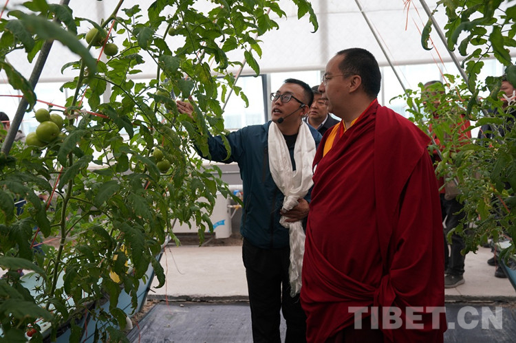 班禪走入蔬菜園、花卉園、熱帶植物園等溫室園區(qū),不時俯身仔細查看農(nóng)作物長勢。得知溫室內竟種有百香果,班禪高興地說道:“百香果可是熱帶植物,能在那曲海拔這么高的地方種出來,很不容易!”在蔬菜園,班禪打開種植擋板,聽取無土栽培種植技術介紹,詳細詢問營養(yǎng)液噴灑時間、頻率等情況,點頭表示肯定。