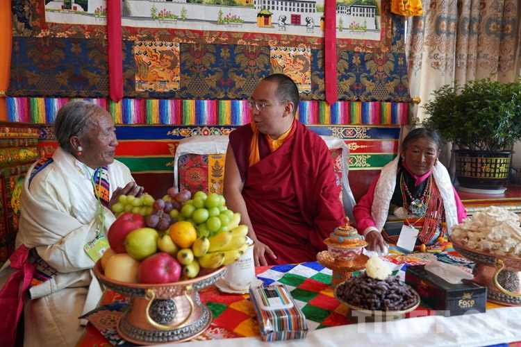 中午時分,班禪結(jié)束了對拉洛水利的調(diào)研,到扯休鄉(xiāng)嘎吉林村看望搬遷群眾,熱情的村民迎上前來向班禪獻(xiàn)上哈達(dá)和切瑪,班禪高興地?fù)]手致意。班禪緩步來到村民歐珠老人家。班禪為家里的老人摸頂賜福,端坐在歐珠家人當(dāng)中,詳細(xì)詢問搬遷后的生產(chǎn)生活情況。得知?dú)W珠老人一家在搬遷后住房條件、生活條件等都有顯著改善,班禪感到十分欣慰。