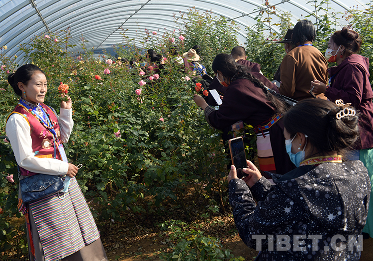 這是森布日那曲極高海拔生態(tài)搬遷安置點的赴京基層干部在北京密云區(qū)參觀現代農業(yè)時,拍照留念(唐召明2021年10月21日攝)
