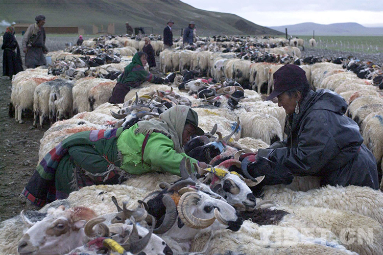 這是那曲地區(qū)雙湖特別區(qū)(現為那曲市雙湖縣)嘎措鄉(xiāng)的牧民群眾在擠羊奶(唐召明2001年攝)