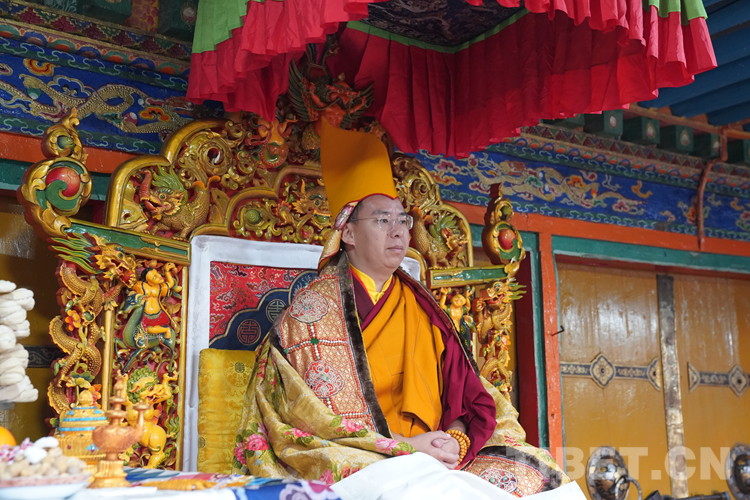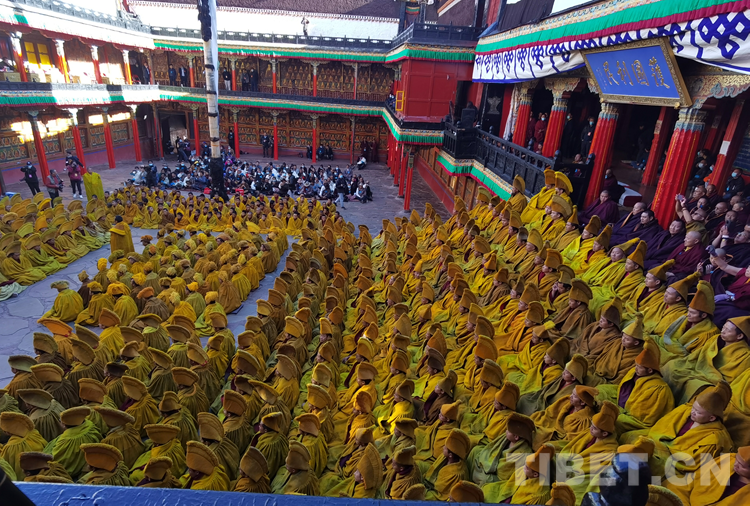 經(jīng)過數(shù)日準(zhǔn)備,26日下午,班禪于扎什倫布寺參加嘎欽學(xué)位立宗答辯。來自西藏自治區(qū)藏傳佛教各教派的堪布、經(jīng)師等高僧以及扎什倫布寺僧眾、信教群眾等800人共赴盛會(huì)、共享法喜。