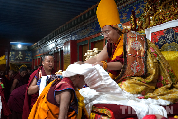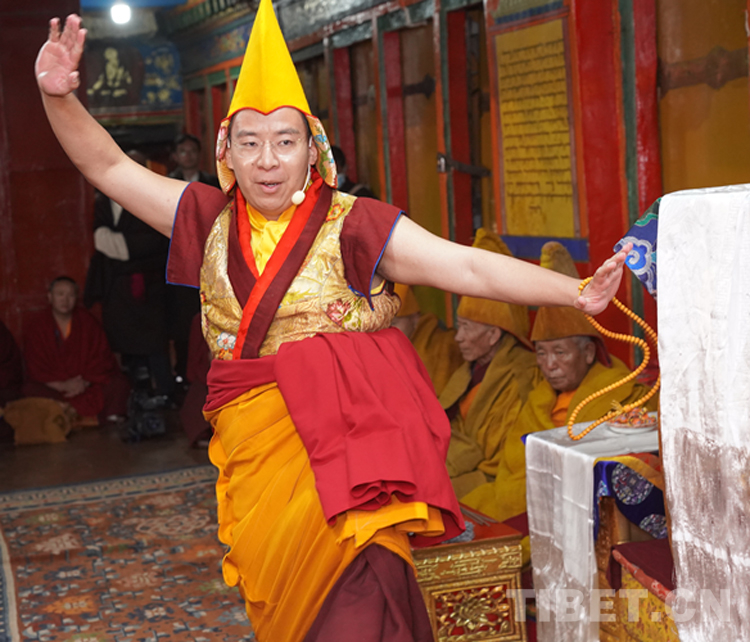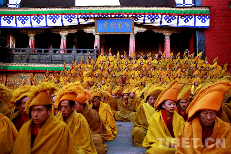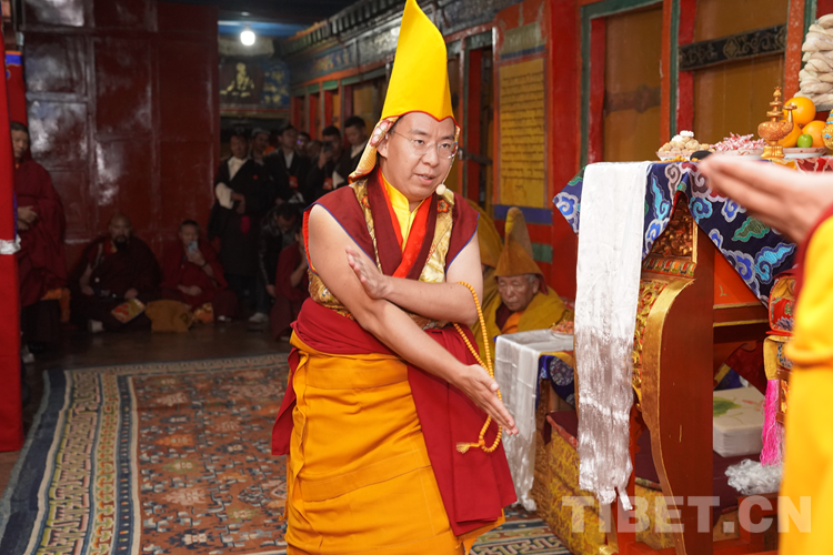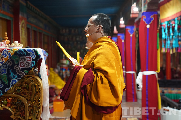 27日(藏歷9月22日),扎什倫布寺舉行祝賀班禪獲得嘎欽學(xué)位吉祥祈愿法會(huì)。班禪向在場(chǎng)所有僧眾摸頂賜福,并與僧眾集體誦經(jīng),回向祈福饒益眾生、法務(wù)昌隆、國泰民安、風(fēng)調(diào)雨順。