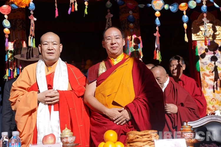 旦科代表西藏自治區(qū)黨委、政府講話:考取“嘎欽”佛學(xué)學(xué)位,是班禪額爾德尼?確吉杰布精進(jìn)學(xué)識、弘法利生畢生事業(yè)中的關(guān)鍵環(huán)節(jié),是二十五年來勤學(xué)苦修、?;劬阍龅闹苯芋w現(xiàn),是在宗教修為上全面成熟的重要標(biāo)志,更是習(xí)近平總書記和黨中央教育培養(yǎng)的重大成果。這是扎什倫布寺的一大喜事,是藏傳佛教界的一大盛事,是寺廟僧尼、信教群眾期盼已久的一件大事。