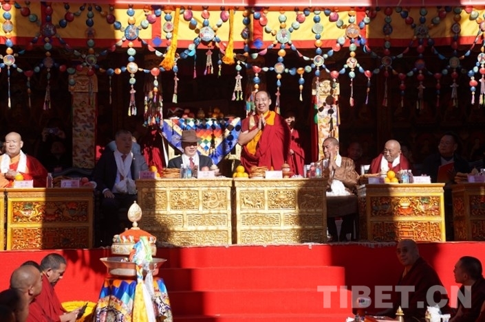 中央統(tǒng)戰(zhàn)部、國家宗教事務(wù)局、中國佛教協(xié)會等致賀信,西藏自治區(qū)黨委常委、統(tǒng)戰(zhàn)部部長旦科代表西藏自治區(qū)黨委、政府講話,西藏自治區(qū)政協(xié)副主席,扎什倫布寺管理委員會第一主任薩龍?平拉代表扎什倫布寺管委會發(fā)言,表達(dá)對班禪獲得嘎欽學(xué)位的祝賀。