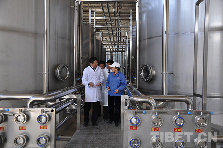 圖為拉薩海關(guān)關(guān)員在企業(yè)現(xiàn)場(chǎng)指導(dǎo)工作