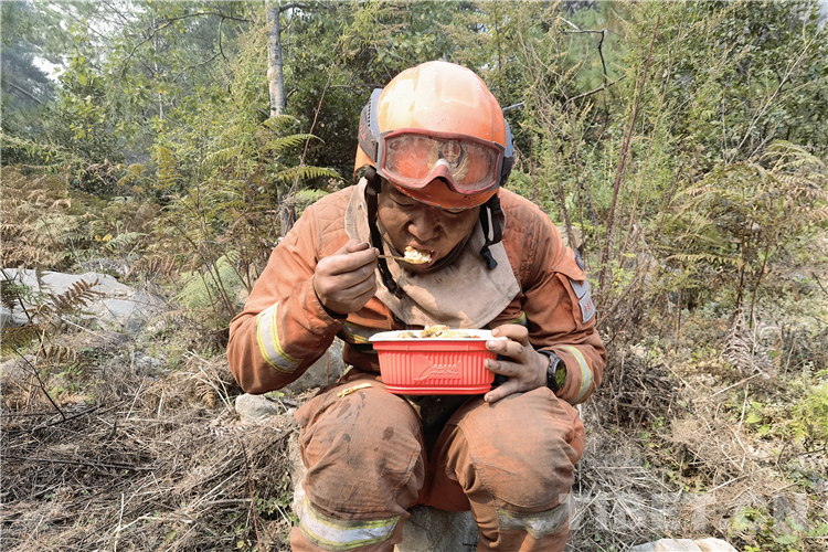 昌都市森林消防支隊卡若區(qū)中隊負(fù)責(zé)清理火場南側(cè)面積最廣的區(qū)域,由于情況緊急,火場坡度接近80°,加上每名消防員負(fù)重20公斤以上,指戰(zhàn)員們出發(fā)時只帶了滅火裝備和少量的飲用水,忍饑挨餓,每日連續(xù)奮戰(zhàn)將近10小時以上。期間,他們婉拒了好幾撥主動來送水、送干糧的群眾。