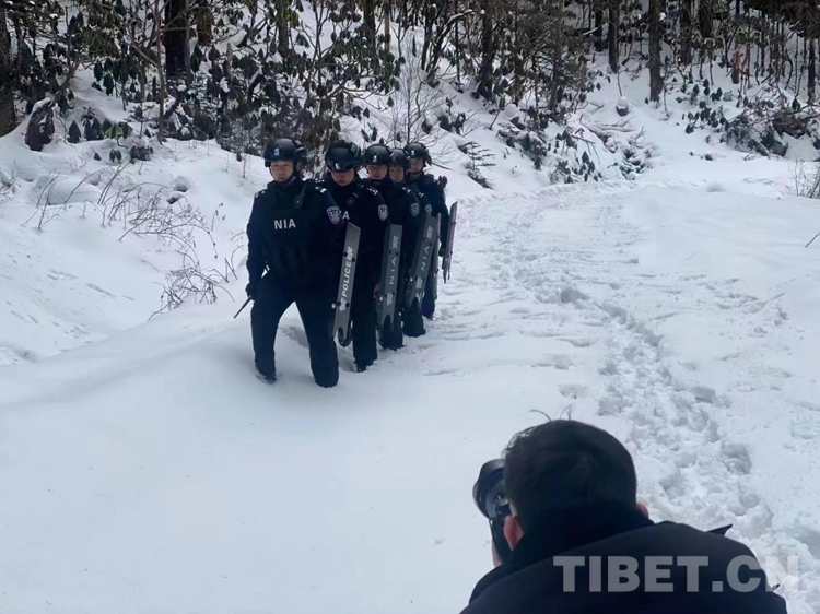 圖為姜?jiǎng)P峰(右下)為西藏出入境邊防檢查總站林芝邊境管理支隊(duì)民警拍攝工作照