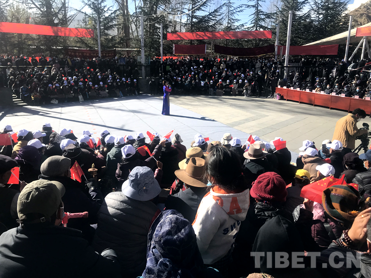 啟動儀式約有1000名干部群眾參加,活動現場組織了大型集中法治宣傳和法治文藝演出,采取憲法歌曲、小品和舞蹈等形式,展現新時代西藏法治建設精神風采,祝福祖國繁榮富強。