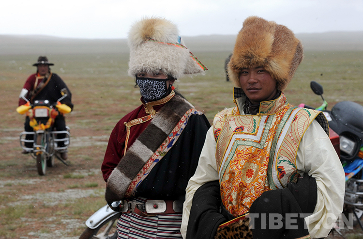 這是兩位青年牧民著盛裝參加雙湖縣的“撤區(qū)建縣”慶?;顒?dòng)(唐召明2013年7月26日攝)