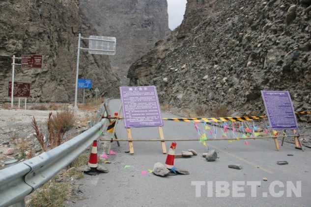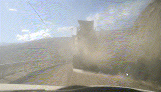 艱難通過(guò)塌方道路后
