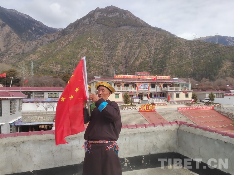 在中國(guó)共產(chǎn)黨成立100周年之際,公覺旦巴拿著自己買的國(guó)旗在村口開始“蹲點(diǎn)”,當(dāng)有村民經(jīng)過(guò)村口時(shí),他便上前發(fā)放新的國(guó)旗,督促大家:“中國(guó)共產(chǎn)黨成立100年即將到來(lái),趕緊把家里的舊國(guó)旗換了,以嶄新的面貌迎接‘七一’,要知道,我們現(xiàn)在的美好生活都是黨給的!”村民們總是雙手接過(guò)國(guó)旗,一邊道謝,一邊微笑著點(diǎn)頭表示認(rèn)同。