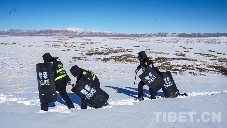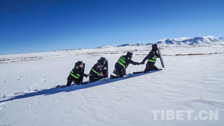 圖為春節(jié)前夕,西藏日喀則邊境管理支隊(duì)仲巴邊境管理大隊(duì)霍爾巴邊境派出所民警在40厘米厚的積雪中開展邊境巡邏 攝影:胡先健