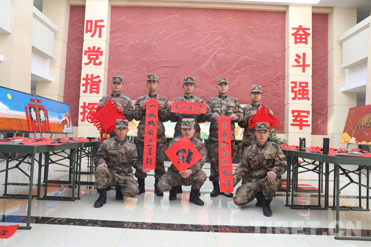 過年貼春聯(lián),是中華民族的傳統(tǒng)習(xí)俗之一,增加過年氛圍的同時,也表達了官兵對新年美好的祝福。春聯(lián),又稱“春貼”“門對”“對聯(lián)”,是過年時所貼的紅色喜慶元素,它以對仗工整、簡潔精巧的文字描繪美好形象,抒發(fā)美好愿望,是中國特有的文學(xué)形式,是中華民族過年的重要習(xí)俗。