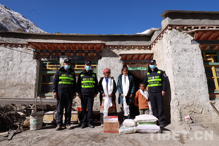 圖為日喀則邊境管理支隊(duì)吉隆邊境管理大隊(duì)貢當(dāng)邊境派出所民警慰問轄區(qū)困難群眾