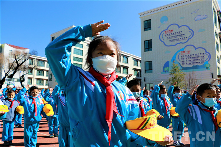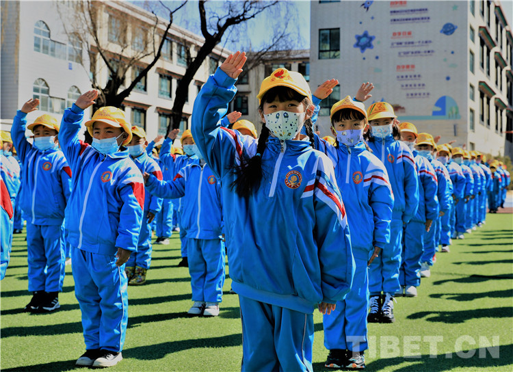 中國(guó)西藏網(wǎng)訊 太陽(yáng)伴隨著初春的微風(fēng)冉冉升起。新的學(xué)期又開(kāi)始了,3月10日早上,風(fēng)和日麗,陽(yáng)光明媚,學(xué)生們穿著整潔的校服,戴著鮮艷的紅領(lǐng)巾,來(lái)到學(xué)校,興高采烈地期待著新學(xué)期特殊的升旗儀式。應(yīng)拉薩市第一小學(xué)邀請(qǐng),拉薩警備區(qū)某團(tuán)官兵早早出發(fā)前往學(xué)校,官兵們整齊的步伐、筆挺的身影、颯爽的英姿感染著一小學(xué)子。
