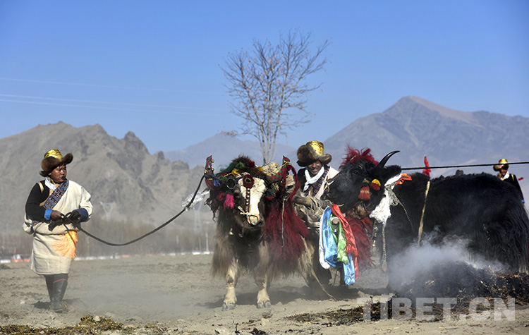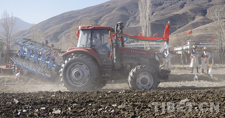 迎著初升的太陽,記者從拉薩市區(qū)出發(fā)前往雅魯藏布江北岸的山南市扎囊縣扎其鄉(xiāng)孟卡榮村春耕現(xiàn)場(chǎng)。寓意豐收的切瑪盒、紅色穗子裝扮的牦牛、彩色布條裝飾的耕整機(jī)……置身其中,熱鬧非凡。
