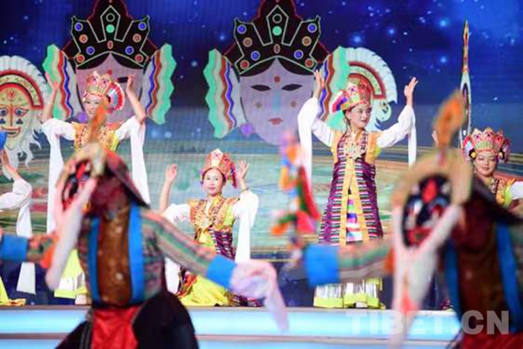 圖為首映式現(xiàn)場(chǎng)的西藏傳統(tǒng)歌舞演出