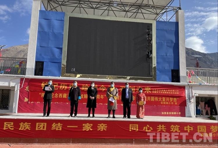 中國西藏網(wǎng)訊 時至三月,春回大地。為深入宣傳好西藏百萬農(nóng)奴解放的偉大意義,營造心向祖國心向黨、凝心聚力促發(fā)展的濃厚氛圍,3月28日,西藏自治區(qū)山南市加查縣安繞鎮(zhèn)小學(xué)嚴(yán)格按照當(dāng)下疫情防控工作要求,舉行了“紀(jì)念西藏百萬農(nóng)奴解放63周年暨建設(shè)美麗幸福西藏共圓偉大復(fù)興夢想”慶?;顒樱餐T競ゴ笞鎳睒s昌盛,西藏的明天更加美好。