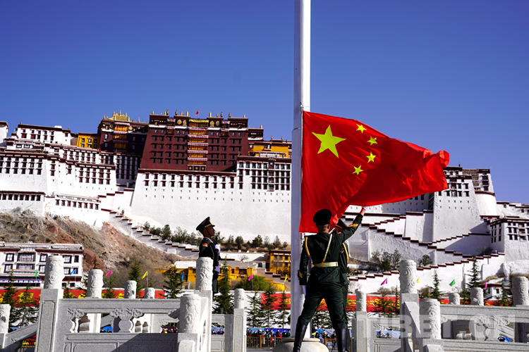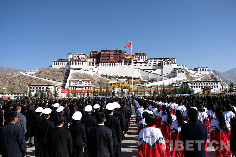 中國(guó)西藏網(wǎng)訊 3月28日上午,西藏自治區(qū)首府拉薩市風(fēng)和日麗,1000余名各族各界群眾聚集在布達(dá)拉宮廣場(chǎng),隆重舉行“升國(guó)旗、唱國(guó)歌”儀式,慶祝西藏百萬(wàn)農(nóng)奴解放63周年。