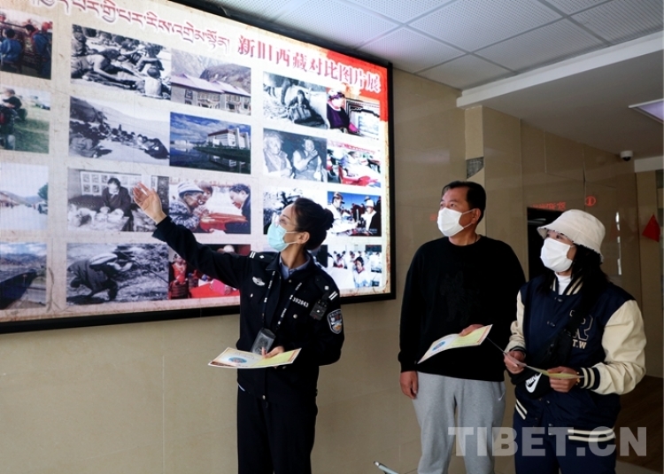 在西藏出入境邊防檢查總站執(zhí)法調查支隊辦證大廳,辦證室民警結合辦證室群眾多、人流量大的實際,開展以“攜手法律宣傳,共建平安邊境”為主題的宣傳活動。通過懸掛宣傳標語、設置新舊西藏對比圖片專欄、發(fā)放“新舊西藏對比圖及涉邊法律法規(guī)”為主題的宣傳單等多種渠道,講解西藏百萬農奴翻身得解放的歷史背景,讓更多游客群眾了解西藏民主改革以來波瀾壯闊的發(fā)展史和翻天覆地的新變化,銘記只有中國共產黨才能領導西藏各族群眾過上幸福美好的生活。