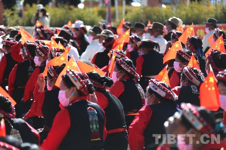 上午10時(shí)30分,伴隨著歌舞《歌頌幸?!?,慶祝西藏百萬農(nóng)奴解放63周年專場文藝演出拉開帷幕。《毛主席派人來》《逛新城》《翻身農(nóng)奴把歌唱》《新舊對(duì)比》等節(jié)目在現(xiàn)場掀起一個(gè)又一個(gè)高潮。舞臺(tái)下,滿是身著盛裝的各族群眾,不斷揮舞著手中的五星紅旗,臉上綻放著感動(dòng)和幸福的笑容。