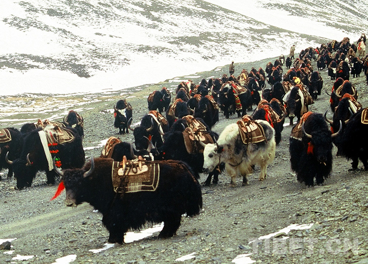 這種特殊地區(qū)的馱牛和馱羊運輸習(xí)俗,是當?shù)啬撩袷朗来瑦毫迎h(huán)境頑強抗爭的產(chǎn)物。昔日的馱牛隊和馱羊隊現(xiàn)已從藏北高原消失,留下的只有模糊不清的牛羊馱物時所走過的蹄印了。