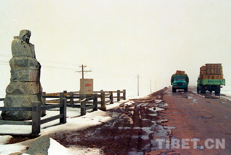 這是藏北高原替代牛羊運輸?shù)钠?,正在通過青藏公路的唐古拉山口(唐召明1988年攝)