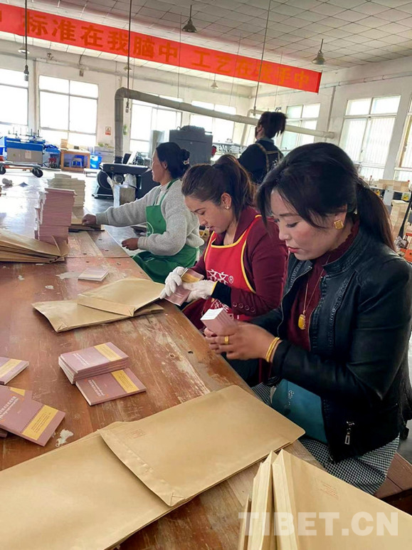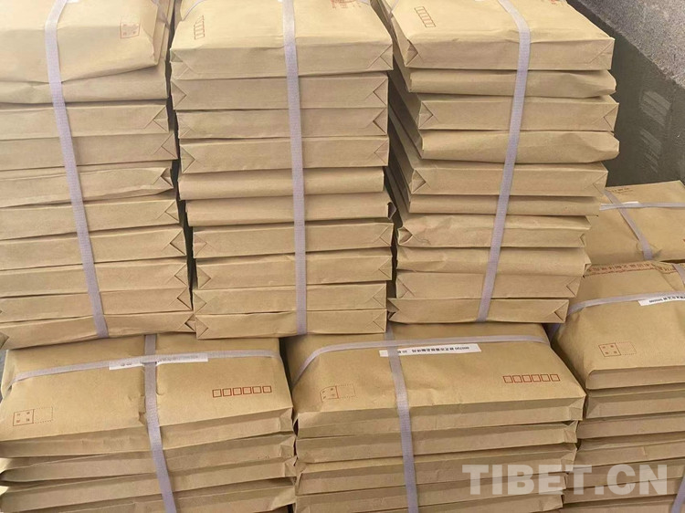 圖為工作人員正在打包發(fā)往基層的《漢藏對(duì)照術(shù)語(yǔ)規(guī)范明鏡》(2021)