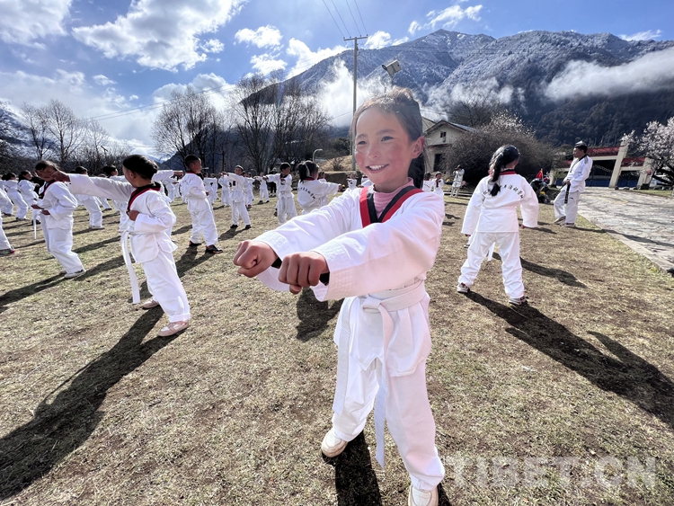 為了參加這次夏令營活動,10歲的旦增在學校的表現(xiàn)可謂是拼盡全力。無論是學習還是生活,他都表現(xiàn)得非常積極努力,只為被選上參加這次跆拳道夏令營?!斑@幾天每天興奮得睡不著覺,尤其是拿到跆拳道服裝那天,很激動。我太喜歡跆拳道了,我一定要努力學習,長大后也像教練們一樣教別人,這樣太酷了。”