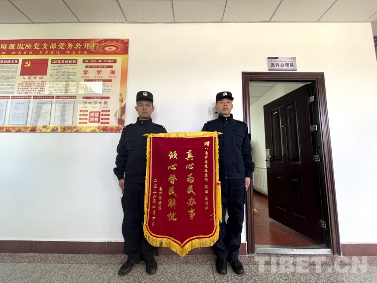 中國(guó)西藏網(wǎng)訊 “真心為民辦事,傾心替民解憂(yōu)!”近日,西藏自治區(qū)林芝邊境管理支隊(duì)南伊邊境派出所收到一面來(lái)自廣東的錦旗,向派出所移民管理警察沈朋、吳川江的幫助表示感謝。