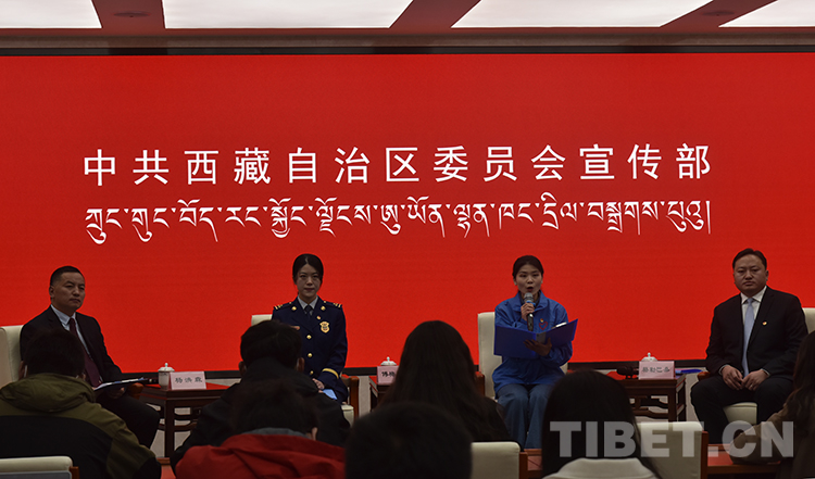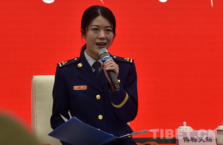 圖為拉薩市消防救援支隊(duì)布達(dá)拉宮消防救援站指導(dǎo)員傅梅天賜現(xiàn)場發(fā)言 攝影:王媛媛