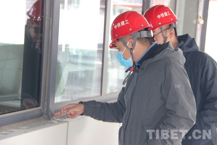 圖為張磊(左)和同事對西藏自治區(qū)醫(yī)院項目施工開展現(xiàn)場檢查